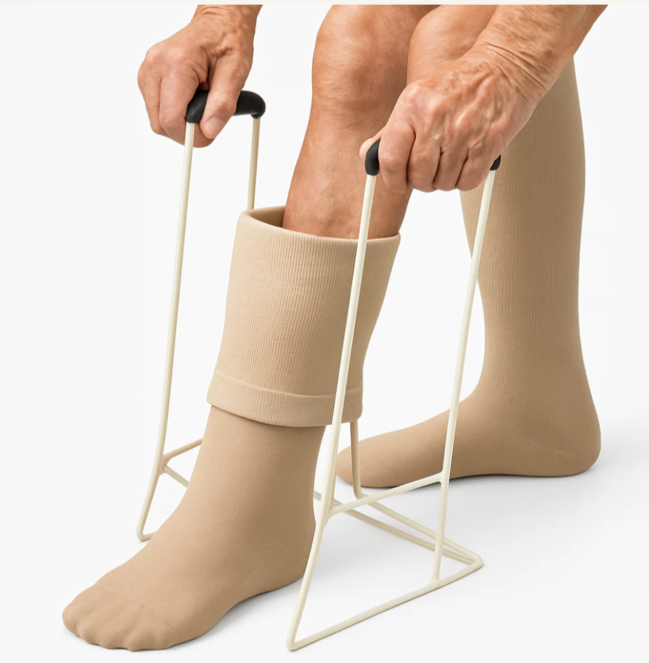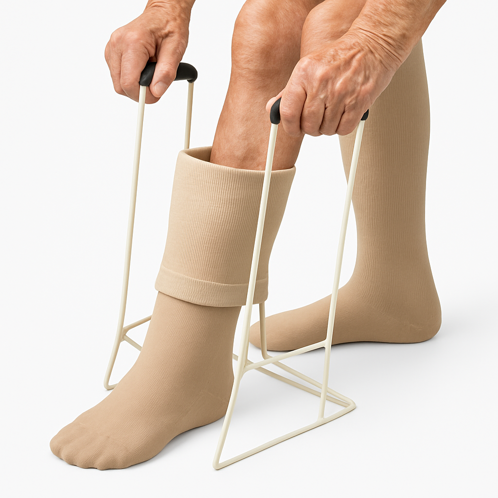 Getting dressed shouldn’t feel like a battle. With our SureGlide, you can slide on your socks or compression stockings in just a few easy steps - no bending, no pulling, and no frustration. Designed with sturdy medical-grade steel and comfortable handles, it fits seamlessly into your daily routine and gives you the confidence to start each day with ease.